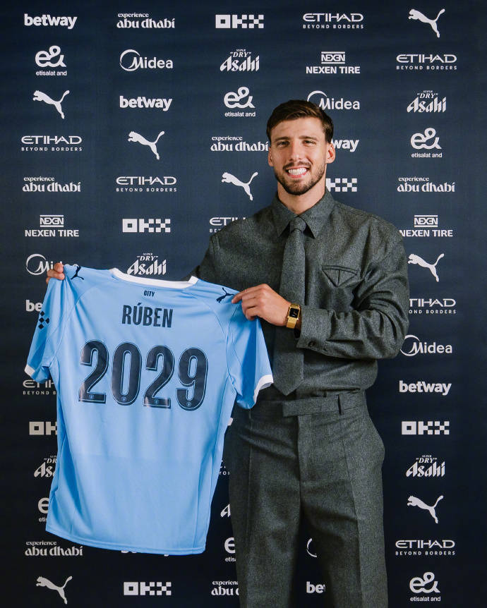 北京时间8月23日消息,昨日,英超豪门曼城官方宣布,球队与葡萄牙后卫鲁本-迪亚斯续约两年,他的合同原本再2027年到期,新合同延长至2029年,并附带12个月的续约选项。